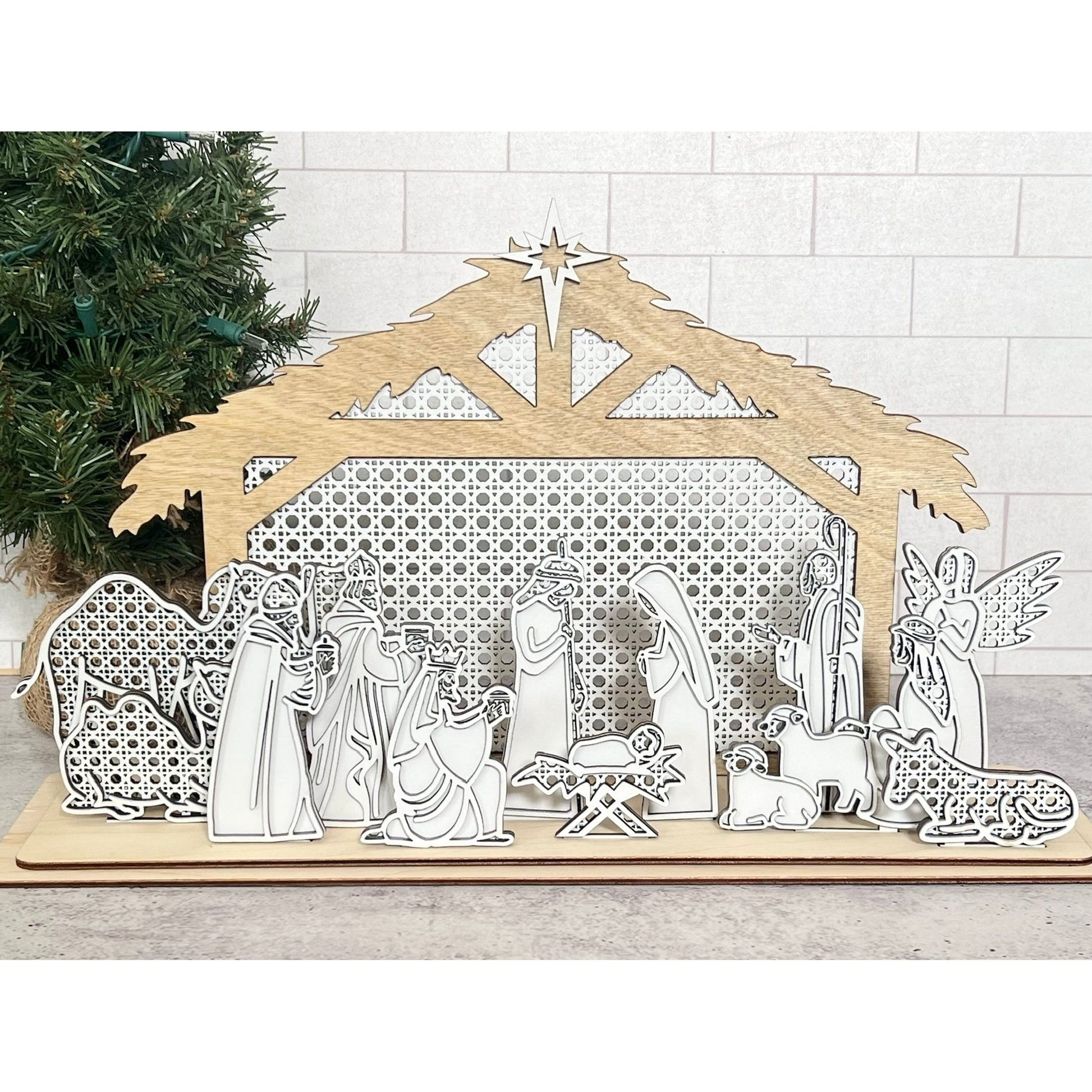 This beautiful Nativity will be a perfect addition to your holiday decor. Each piece comes out and lays flat so that is easy to store and use year after year.